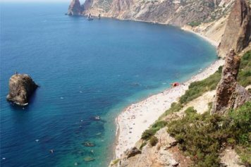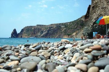 Чистое море, белый песок на дне, украшенный камнями, покрытыми водорослями, — в тихую погоду вода становится настолько прозрачной, что можно рассматривать подводные красоты и без маски. Чтобы попасть на Яшмовый пляж, нужно спуститься по старинной монастырской лестнице, в которой 800 ступеней. Если вам нужны физические нагрузки — то этот пляж их гарантирует, а если вы желаете просто отдохнуть с детьми и расслабиться, то лучше набраться терпения. Полезная информация:Достопримечательности Фиолета: Георгиевский монастырь