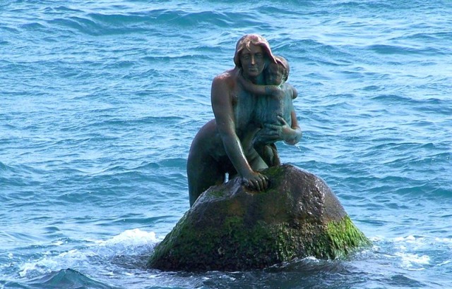 «Похищение Арзы» — скульптурная композиция на суше и в водеРасположение: поселок Мисхор. Подойдя к фонтану, Арзы нагнулась и подставила под желобок свой кувшин. Вода звонко полилась в медный кувшин. Вдруг…