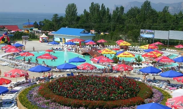Расположение: г. Судак, ул. Гагарина, 79 Стоимость входа зависит от роста, возраста и от того, какой отрезок времени вы собираетесь провести в парке (указаны цены на 2010 год): — детский (рост до 100 см) — бесплатно, выше 130 см — по стоимости взрослого, от 100 до 130 см — по детскому тарифу; Аквапарк «Водный мир» расположен в городе Судак, на самом берегу моря. Большой развлекательный комплекс занимает площадь в 20 тысяч квадратных метров. В «Водном мире» работают опытные инструкторы, в том числе и проводящие аквааэробику, спасатели. Здесь функционирует система очистки воды фирмы «Мирта пулс» (Италия), имеющая несколько степеней очищения, после которых качество воды практически соответствует качеству питьевой. В аквапарке три комплекса аттракционов. В первом: «Женская страсть» — восьмиметровая горка, «Камикадзе» и «Оранжевая речка» — четырнадцатиметровые горки. Во втором: аттракционы Multislide, «Синяя борода», Black hole. Третий — детский, включающий три водных аттракциона со стартовой площадкой на высоте 5 метров. Для взрослых предусмотрен развлекательный многофункциональный бассейн из двух зон, соединенных мостиком с водной завесой, и «рекой» с противотоком, скорость которого 5 километров в час. Бассейн имеет три глубины (80, 100 и 120 сантиметров) и остров (аэрарий), а также каскады и фонтаны. Детский бассейн также имеет три глубины (20, 40 и 60 сантиметров), фонтан и водные завесы. Питание предоставляют пиццерия «Челентано» и два бара. К услугам отдыхающих медпункт, туалеты, раздевалки, камеры хранения, VIP-зона. В вечернее время проводится водная дискотека.