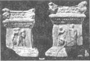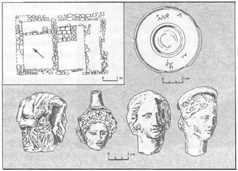 Аналогичные культовые помещения или святилища, вероятно, имелись и в других усадьбах, о чем можно говорить на основании находок сравнительно небольших известняковых алтарей эллинистического времени, обнаруженных при раскопках памятников Гераклейского полуострова. Но, к сожалению, плохая сохранность строительных остатков усадеб не позволяет сказать что-либо определенное о структуре таких святилищ, но их наличие и важная роль в повседневной жизни владельцев усадеб в эллинистический период бесспорны. В этой связи весьма показательны археологические свидетельства наличия домашнего святилища III—II вв. до н. э., связанного с почитанием Диониса, в усадьбе земельного участка № 151(226) на Гераклейском полуострове.