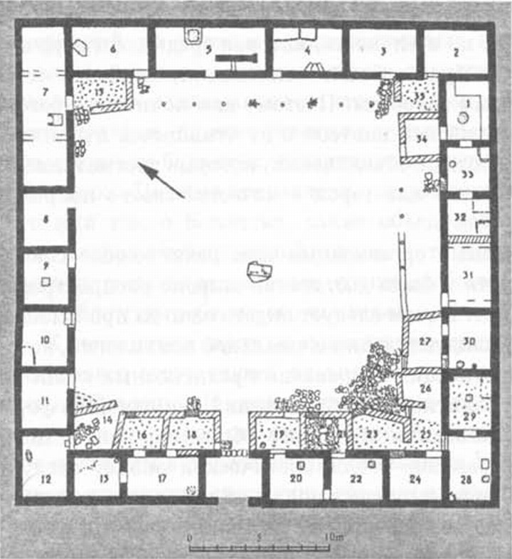 Места отправления культа римскими военнослужащими. В связи со специфическим характером идеологии римского гарнизона, которая отличалась от верований и религиозных представлений в целом греческого населения, следует остановиться на тех постройках, в которых могли отправляться культовые действия римскими военнослужащими в Херсонесе и его окрестностях. Причем после раскопок римского опорного пункта на территории современной Балаклавы о таких комплексах можно говорить достаточно определенно. К северу от Балаклавской бухты в 1996—1997 гг. были открыты остатки культового комплекса, в одном из помещений которого in situ обнаружены памятники, связанные с почитанием божеств римскими военнослужащими дислоцировавшегося здесь гарнизона. Анализ планировки и строительных остатков раскопанного комплекса свидетельствует, что его нельзя интерпретировать как храм. Более того, сейчас установлено, что это была достаточно большая постройка и только два ее помещения были культовыми. По своему принципиальному архитектурно-планировочному решению и сделанным находкам балаклавский комплекс достаточно близок схолам принципалов, хорошо известным на территории римских военных лагерей, где они, как правило, встроены в комплексы принципий. В данном случае, как и в других местах огромного римского мира, балаклавская схола не имела изолированного объемно-пространственного выражения, тем более в виде антового храма. Причем небольшие размеры балаклавского комплекса в первую очередь зависели от тех функций, для которых он предназначался, и количества людей, обычно собиравшихся здесь. Как известно, разного рода сооружения, связанные с римской военной архитектурно-строительной традицией, отличались в Северном Причерноморье от других районов дислокации римских войск сравнительно скромными размерами. Достаточно в связи с этим напомнить, например, термы, раскопанные на территории римской цитадели Херсонеса и Харакса.
