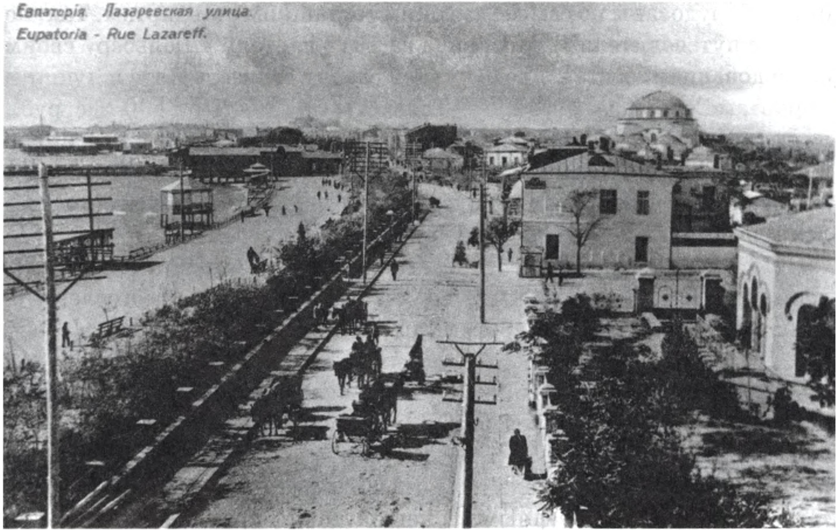 Евпатория в конце XVIII — начале XX вв.8 апреля 1783 г. Екатерина II подписала манифест «О принятии полуострова Крымского, острова Тамани и всей Кубанской стороны под Российскую державу». Указом императрицы от 8 февраля 1794 г. была образована Таврическая область с 7 уездами, среди которых обозначен и Евпаторийский. Евпатория стала уездным городом1. 12 декабря 1796 г. Указом Павла I, ненавидевшего все, что было связано с Екатериной II, Таврическая область как таковая была ликвидирована. И, наконец, 8 октября 1802 г. Указом Александра I создается Таврическая губерния в составе семи уездов, из коих один — Евпаторийский (Козловский)2. С тех пор и до установления Советской власти в Крыму Евпатория оставалась уездным городом. Однако старое название города еще достаточно долго сохранялось в государственных документах. Так, в «Списке населенных мест по сведениям 1864 г.» значится «Евпатория (Козлов, Гёзлёве)»3. Евпатория в самом начале XIX века находилась в крайне плачевном состоянии. Ее население сократилось до критической отметки и в 1802 г. составляло всего 1912 человек, из них: купцов — 129, мещан — 1668, казаков — 3, крестьян — 14. В Евпаторийском уезде в 1814 г. проживало 27 514, в 1815 г. — 27 543, в 1819 — 29 539 и в 1820 — 29 508 человек5. Как отмечали почти все путешественники первой половины XIX в. (со слов местного населения), лучшие времена для Евпатории были уже позади. Чтобы как-то реанимировать порт Козлов, Павел I объявил его porto franco, то есть освободил все поступающие сюда товары от пошлины. Одной из причин упадка Евпаторийского порта, по мнению А. Демидова, было укрепление Одесского порта и развитие каботажного судоходства около Севастополя6. Другая причина заключается в том, что основным контрагентом гёзлёвской торговли являлись, по словам Тунманна7, восточные ногайцы, орда которых полностью эмигрировала в конце XVIII в. в Турцию. С.И. Шакай — создатель первого сада в городе Тем не менее Евпатория оставалась одним из главных торговых портов Крыма; в 1829 г. была построена новая современная пристань. Как и ранее, основными экспортными товарами были пшеница, овечья шерсть, сырые и выделанные кожи, войлок, бурки, соль и сало, масло коровье. Предметом ввоза служили сухие фрукты, маслины, деревянное масло, кофе, табак, разные бумажные изделия, баламут или дубовые желуди8. Хлеб закупался в Екатеринославской, Полтавской, Воронежской и, естественно, в Таврической губерниях. Крымские товары вывозились в Константинополь, Триест, Марсель, Смирну, Анатолию и Архипелагские острова. Несмотря на скептическую оценку состояния экономики города в первой половине XIX в., обращает внимание огромное положительное сальдо в торговле (см. табл.). Это объясняется прежде всего тем, что многие суда приходили в Евпаторийскую гавань, груженные балластом и легковесным товаром — пряностями, кофе и фруктами. В то же время пшеница и шерсть, занимая большой объем, весили немного. Причем каботажные рейсы здесь не учитываются. В первой половине XIX в. Евпатория слыла тихим заштатным городком губернии. Пост городничего в Евпатории занимали: в 20-е гг. — Эссель, в 1839—1848 гг. — м-р Иосиф Михайлович Фиерковский, в 1849—1854 гг. — Платон Михайлович Титов [см.: Новороссийский календарь за 1839—1855 гг.]. 27 июня 1825 г. город проездом посетил Адам Мицкевич. Вот как описал это событие в своем письме польский писатель Генрик Жевуский: «...Когда при