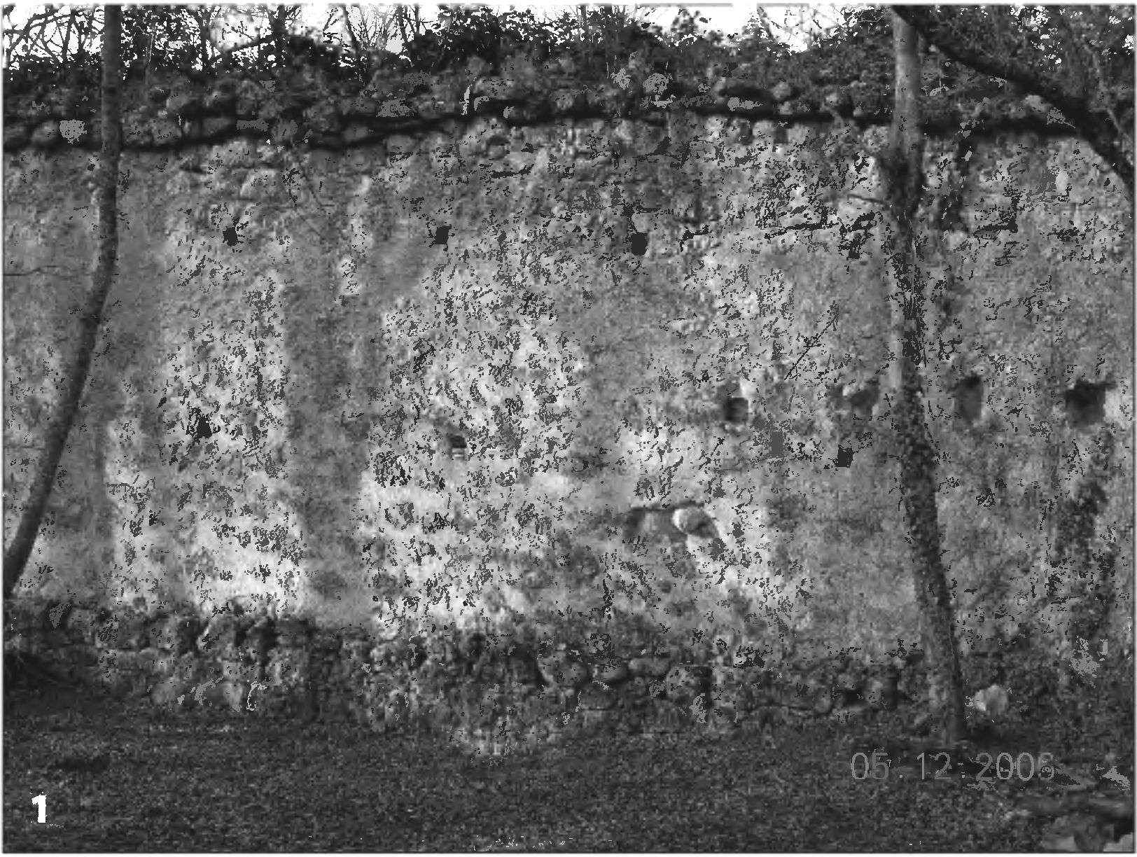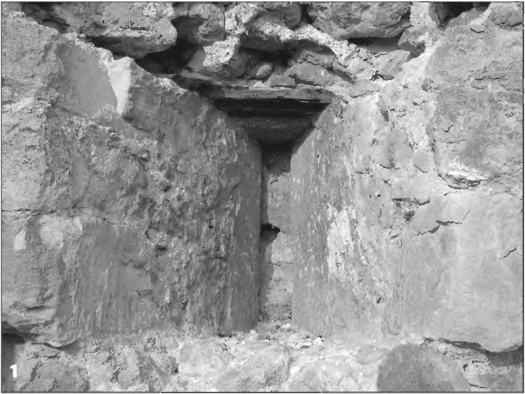3.4.2. Укрепление границ Феодоро в 30—40-х гг. XV в. Замки ГотииВладетеля Феодоро Алексея I (Старшего) явно не удовлетворяли результаты войны, потому что он не только не смог удержать Чембало, но и на несколько лет потерял Каламиту. Стремясь отрезать полностью выход феодоритов к морю, генуэзцы начали перестраивать крепость в устье реки Черной. Ими была реконструирована северная линия обороны, где располагался главный вход в укрепление, подвергшийся кардинальной перестройке. Въездная башня приобретает U-образные очертания плана. На уровне второго яруса сооружается галерея, а ее верхнюю боевую площадку венчают кремальеры — зубцы с завершением в виде ласточкина хвоста (рис. 47: 1, 2; 48; 49: 2)1. К башне № 2 с внешней стороны делается дополнительная пристройка, после чего она обретает полукруглую форму. При этом были закрыты амбразуры более раннего сооружения (20—30-х гг. XV в.) (рис. 51: 2; 76; 77). Рис. 76. Башня № 2 крепости Каламита: 1 — вид изнутри (с юга); 2 — вид с юго-запада на внутреннюю часть башни со следами перестройки 30—40-х гг. (?) XV в. Подтверждением строительной деятельности лигурийцев на данном памятнике, традиционно приписываемой османам [Бертье-Делагард, 1886, с. 187—190; Филиппенко, 1996, с. 149—150], является находка на территории Каламиты фрагмента закладной плиты с генуэзскими гербами [Oderico, 1792, p. 212, tav. XV; Мурзакевич, 1837, с. 61; Латышев, 1896, с. 47; Maggiorotti, 1933, p. 260, fig. 207], На плите были изображены герб Генуи и коронованный лев, держащий в лапе лилию или звезду. Латинская геральдическая символика сопровождалась более поздним греческим (расположен между ветвями креста) текстом: «<...> гербы генуэзцев в крепости Инкерман» [Латышев, 1896, с. 46—47]. Под надписью помещена и дата, выдающая в ее авторе человека мало сведующего в летоисчислении, принятом в странах западной Европы — «MCCCCLXVV». Не вызывает сомнений то, что кем-то была сделана попытка вывести дату, относящуюся ко второй половине XV в. — 1462 (MCCCCLXVV), 1464 (MCCCCLXIIII) или 1465 (MCCCCLXV)2 гг. Но Каламита в это время принадлежала феодоритам, а «Инкерманом» она стала называться турками уже после 1475 г. Рис. 77. Щелевидные амбразуры башни № 2 крепости Каламита второго строительного периода (1425—1433? гг.), перекрытые полукруглой башней (четвертый строительный период): 1 — вид на «восточную» амбразуру; 2 — вид изнутри на «западную» амбразуру Однако закладные плиты с латинскими надписями и геральдическими символами какого-либо аристократического рода из Лигурии, вероятнее всего, могли быть датированы только в пределах июня 1434 — ноября 1441 гг. (т. е. MCCCCXXXIV — MCCCCXXXXI). Следует также учитывать широкую популярность таких геральдических символов, как «лев» и «лилия» [Oswald, 1984, s. 255—256, 259—260]. Рис. 78. Блок нуммулитового известняка из башни № 5 крепости Каламита с изображениями парусных кораблей XV в. (по [Романчук, Быков, 1981, рис. 1—8]) Например, львы помещены на щитах с надписями консула Румбальдо Гварко из Солдайи 1394 г. и Джованни Гаспарино д'Асте в Каффе (не датирована) [Юргевич, 1863, с. 166—167, 172, табл. № 15, 31]. Поэтому поиски «владельца» или восстановителя Каламиты в 1434—1441 гг. могут увести нас от рассмотрения основной темы, оставаясь при этом на уровне слабо аргументированного предположения. К сожалению, давно потерян сам фрагмент с изображениями, а остальная часть с латинским текстом не найдена. Рис. 79. Изображение № 1 латинского парусного корабля XV в. на каменном блок