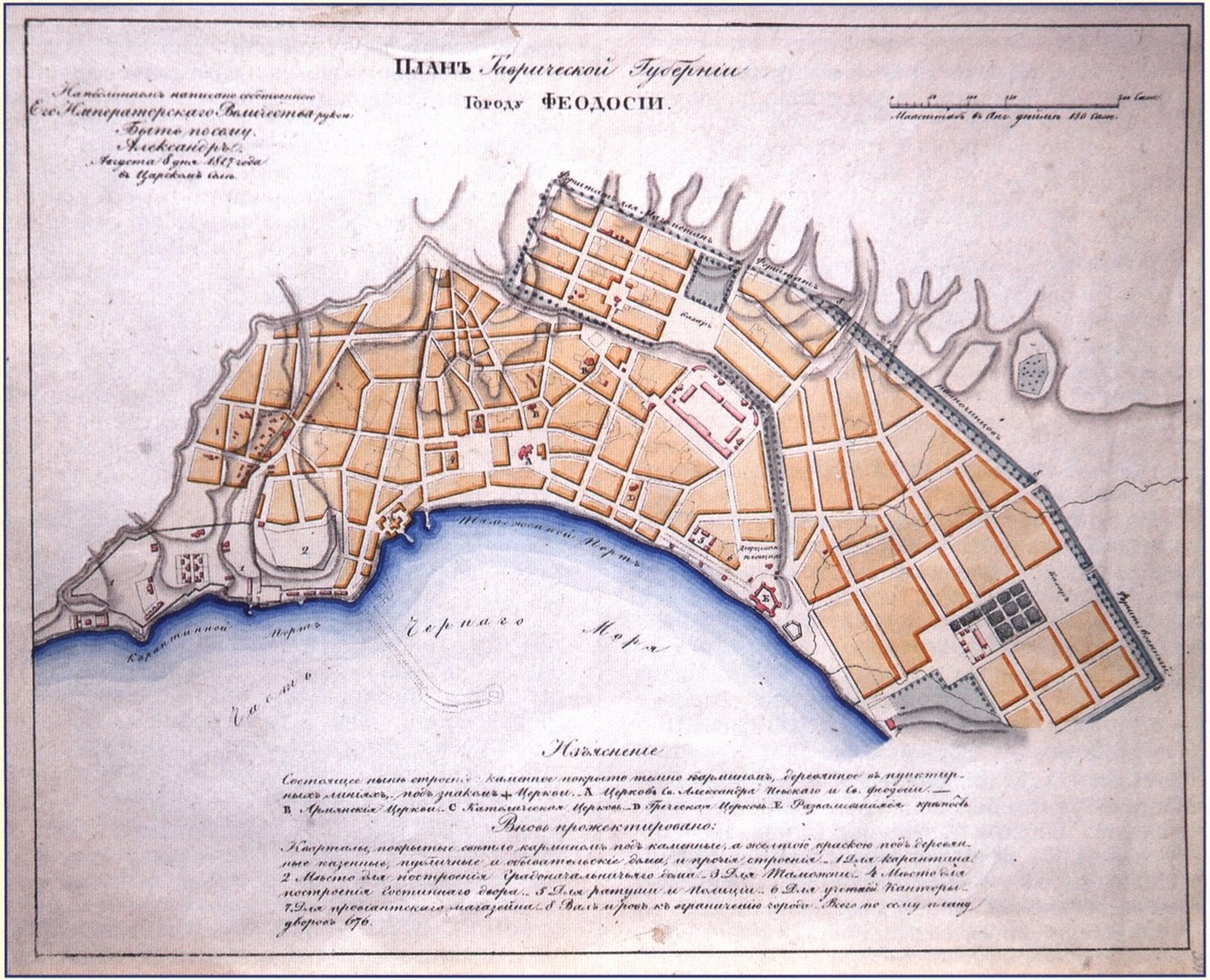 В путеводителе К. Монтандона за 1834 г. сообщалось, что население Феодосии составляло 4,5 тыс. человек, а посетивший город в том же году О. Мармон говорил о 7 или 8 тыс. его жителей. Н.Н. Мурзакевич, путешествовавший по полуострову в 1836 г., отметил, что в Феодосии было 5756 жителей обоего пола, и насчитал в ней три православных, две армянских и одну католическую церкви, один армянский монастырь, две синагоги (синагога и кенасса), две мечети и уездное училище с 90 учениками. В 1836 г. на семнадцати мелких предприятиях города было занято 98 рабочих. В городе трудилось 60 ремесленников. Насчитывалось 35 лавок, 3 трактира и гостиницы, 9 харчевен и 16 кофеен. Тридцать три года градоначальства (1804—1837 гг.) — один из наиболее значимых этапов в истории Феодосии XIX в. На это время пришелся как стремительный расцвет города, игравшего заметную роль в черноморской торговле, так и постепенная утрата им занимаемых позиций, что в конечном итоге привело к ликвидации самого градоначальства. О местном самоуправленииНаряду с жесткой вертикалью центральной государственной власти, то есть органов государственного управления (градоначальники, городничие, полиция и т. п.) в городах и уездах Российской империи действовало местное самоуправление. Опыт деятельности органов местного самоуправления, подходов к решению тех или иных проблем, обеспечения публичности работы заслуживают внимания и сегодня.