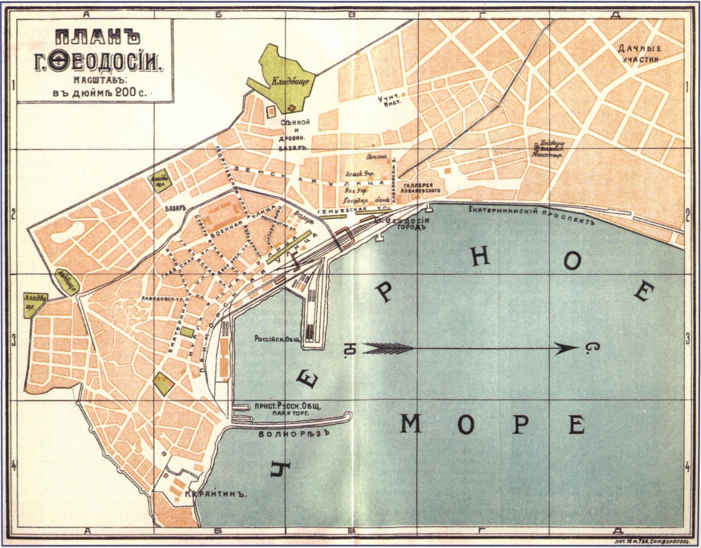 В путеводителе по Крыму Г.Г. Москвича за 1910 г. отмечалось: «Феодосия — уездный город Таврической губернии с 35-ю тысячами жителей, довольно красивый, чистый и благоустроенный... Главные улицы, порт и многие учреждения и частные дома освещаются электричеством».