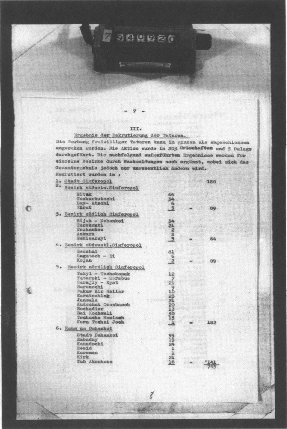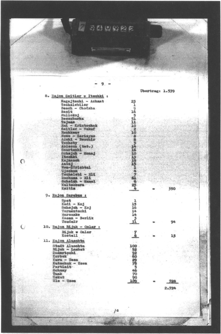 * Все самолёты из 250-го тяжелобомбардировочного авиаполка 132-й бомбардировочной авиационной дивизии (кроме тбап, в составе бад — 6-й дбап и 453-й дбап). ** Все вылеты осуществлялись с аэродрома в Краснодаре. *** Характер спецзадания так, как в документе. Приложение № 3План действий партизан Крыма до начала боевых действий Красной армии 22 июля 1942 г. 1. Вследствие начала крупных операций противника против партизан, считаю необходимым, во что бы то ни стало сохранить личный состав отрядов путём широкого маневрирования в горной части Крыма. 2. Создать разветвлённую сеть агентуры в населённых пунктах степной части Крыма, главным образом на путях и крупных населённых пунктах. Эту работу провести большим забросом своих людей для вербовки и организации. 3. Всеми отрядами выбрасывать диверсионные группы в глубину и нарушать нормальное движение по ж. д. и шоссейным дорогам. 4. Вывезти всех, мешающих манёвру отрядов: больных, раненых, женщин и детей. 5. Создать небольшой запас продовольствия в местах расположения и манёвра отрядов. Для обеспечения всех мероприятий прошу Вас обеспечить меня посылкой не менее 10 «С-2» и одного «ТБ-3» для вывоза больных, раненых и детей. Прошу забросить как можно скорей большое количество продовольствия. Послать для укрепления отрядов свежих людей взамен убывающих больных. Пополнить меня вооружением, главным образом ручными пулемётами, автоматами и патронами. В целях укрепления и улучшения управления районами закрепить за мной один «С-2» для связи с командирами районов. По линии создания подпольных коммунистических организаций в степной части Крыма проделана следующая работа: 1. В Колайском районе создано две подпольные группы 4 и 7 человек, с охватом 5 населённых пунктов. 2. В Сейтлерском районе создано 5 групп — 19 человек с охватом 7 населённых пунктов. 3. В Ичкинском районе создано 6 групп — 26 человек, с охватом 8 населённых пунктов. 4. Район восточнее и западнее Карасубазара 11 групп — 28 человек с охватом 10 населённых пунктов. 5. В Зуйском районе 4 группы — 18 человек с охватом 6 населённых пунктов. 7. В районы Старого Крыма, Джанкоя и Кировского люди посланы, но ещё нет связи и нет результатов работы. 8. Готовим забросить в Сарабуз, Биюк-Онлар и Курман-Кемельчи. Представлен командованием партизан маршалу С.М. Будённому Эти группы ведут работу среди населения по разъяснению правды о сов. власти, снабжают газетами и вербуют новых людей в организации. Командующий партизанами Крыма полковник Лобов Зам. военного комиссара батальонный комиссар Н. Луговой.3 Приложение № 45 сентября 1942 г. План проведения операции по спец. заданию в период с 12 по 30 сентября 1942 г.