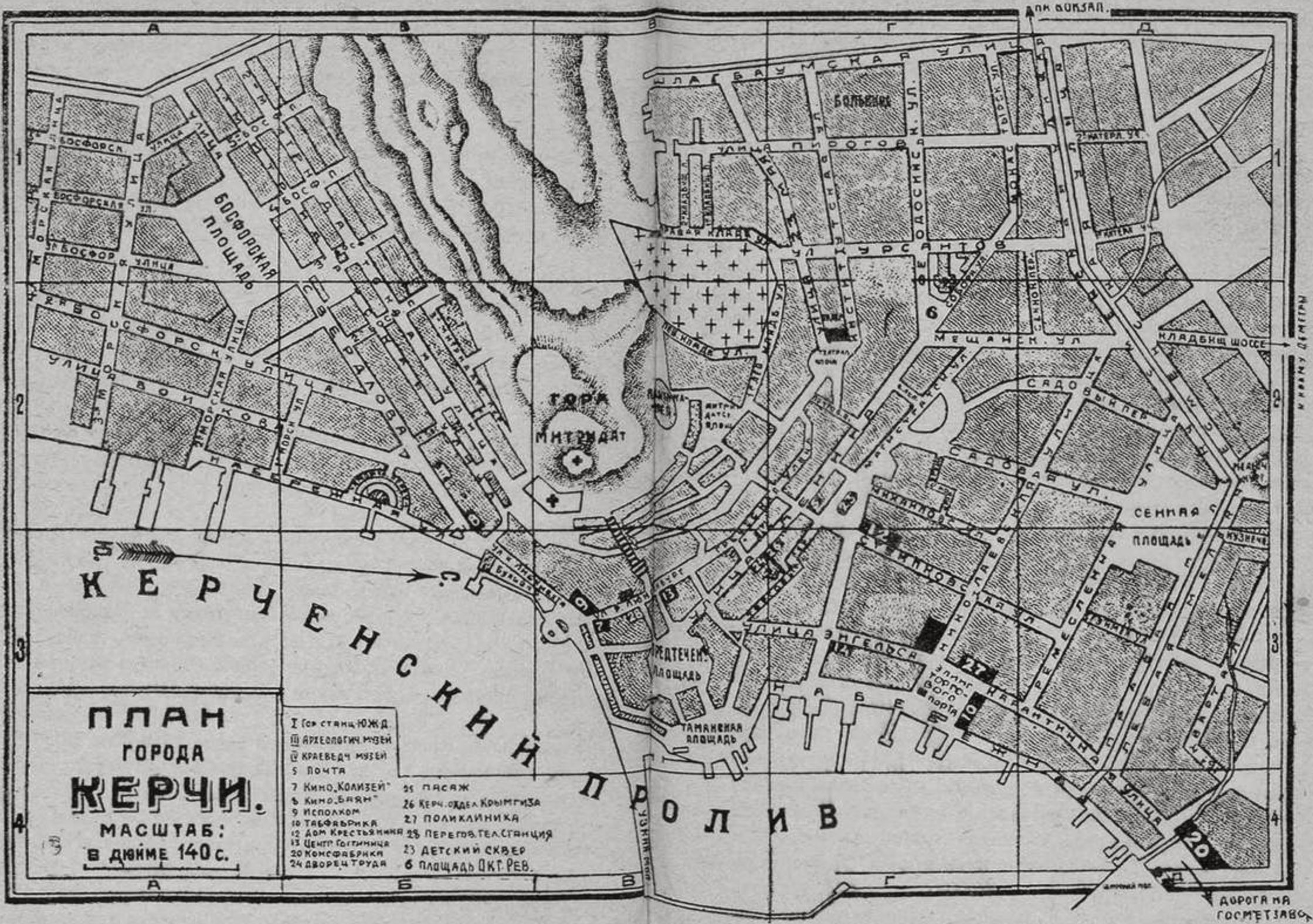 24. Керчь и Керченский полуостровКерчь (45°11′ с. ш. и 36°29′ в. д. от Гринвича) находится на одноименном полуострове, на берегу бухты которая является небольшой впадиной Керченского пролива. Сообщение — по железной дороге через ст. Владиславовка и пароходами Крымско-Кавказской и Крымско-Ростовской линий.