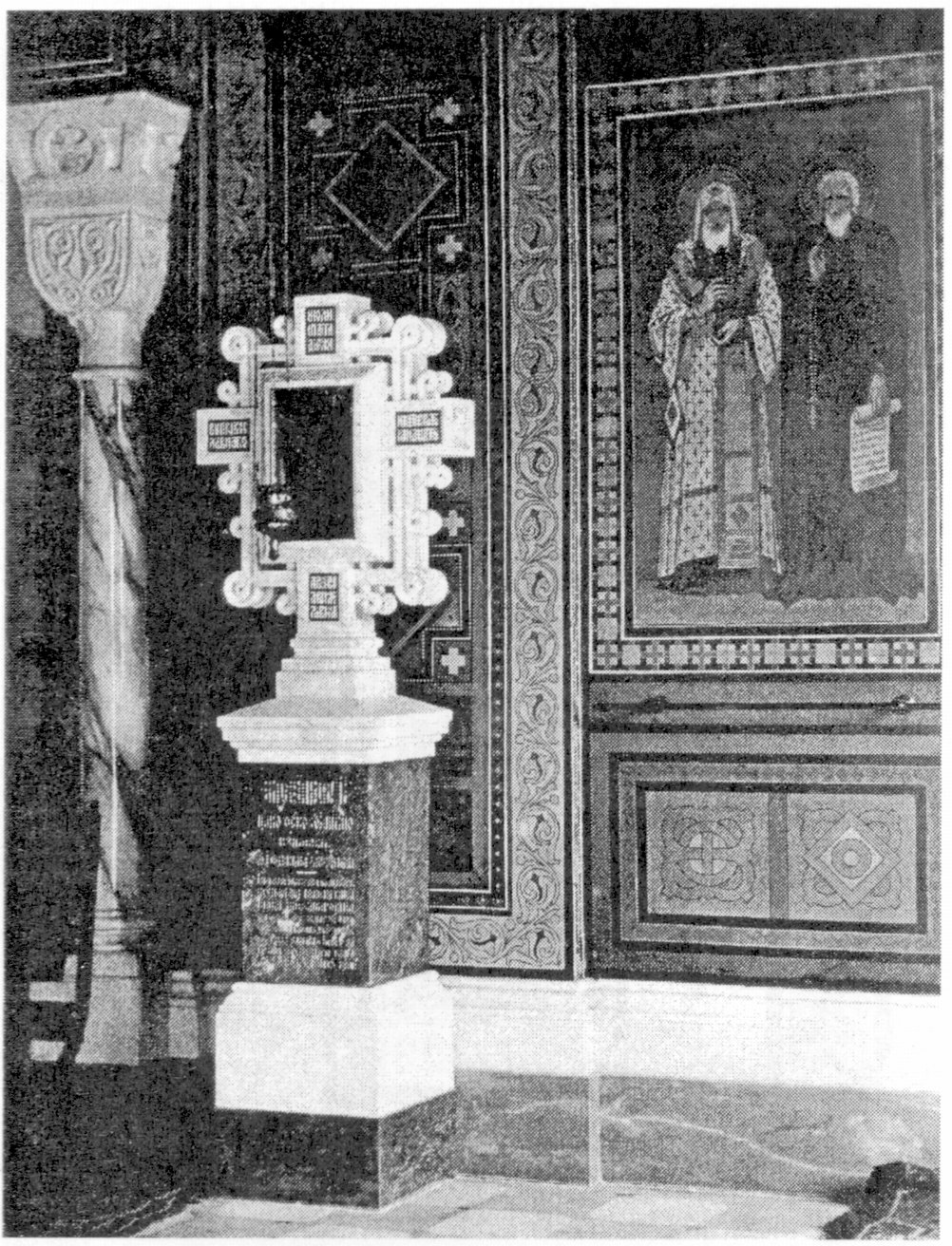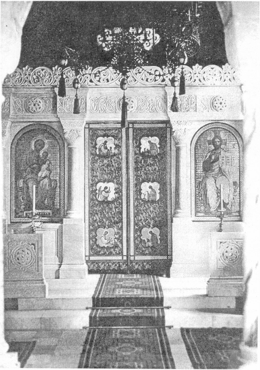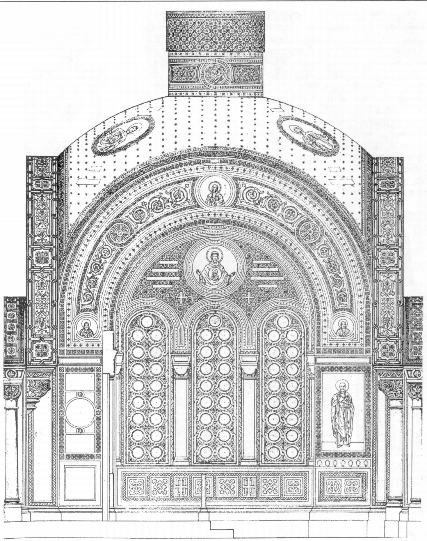 Период 1862—63 гг. был самым сложным для архитектора и его верного помощника П.И. Останищева-Кудрявцева: им пришлось следить за ходом строительства и реконструкции более чем 20 построек. В Ялту начали прибывать многочисленные грузы из-за границы, Одессы и других городов России со строительными материалами, мебелью, утварью для церкви и дворцов. В довершение всего, зима выдалась крайне неблагоприятной для строительства, холодной и снежной, дороги обледенели, и Ливадия оказалась отрезанной от важнейших источников строительных материалов13. Из-за задержки с доставкой из Италии мраморных украшений пришлось перенести сроки внутренних работ в уже возведенной к лету 1863 года Крестовоздвиженской церкви, а приехавшему для написания в ней 36 икон известному художнику Александру Егоровичу Бейдеману на некоторое время вернуться в Петербург. Приведем интересный отрывок из отчета Бейдемана именно этого периода — как свидетельство человека, находившегося под впечатлением увиденного в Ливадии: «Церковь снаружи совершенно окончена и представляет счастливое решение задачи в византийском стиле: необыкновенно изящного небольшого храма, но внутри надо бы работать еще 4½ недели, если не более. Нельзя пройти молчанием и не изумляться тому, что г-ном Монигетти здесь произведено в десять месяцев его пребывания! Дворец совершенно готов снаружи и внутри для того, чтобы принять Государыню Императрицу. <...> У г-на Монигетти всякая деталь обработана до восхитительной степени совершенства, одно жаль, что церковь еще в таком положении, что надо ждать...»