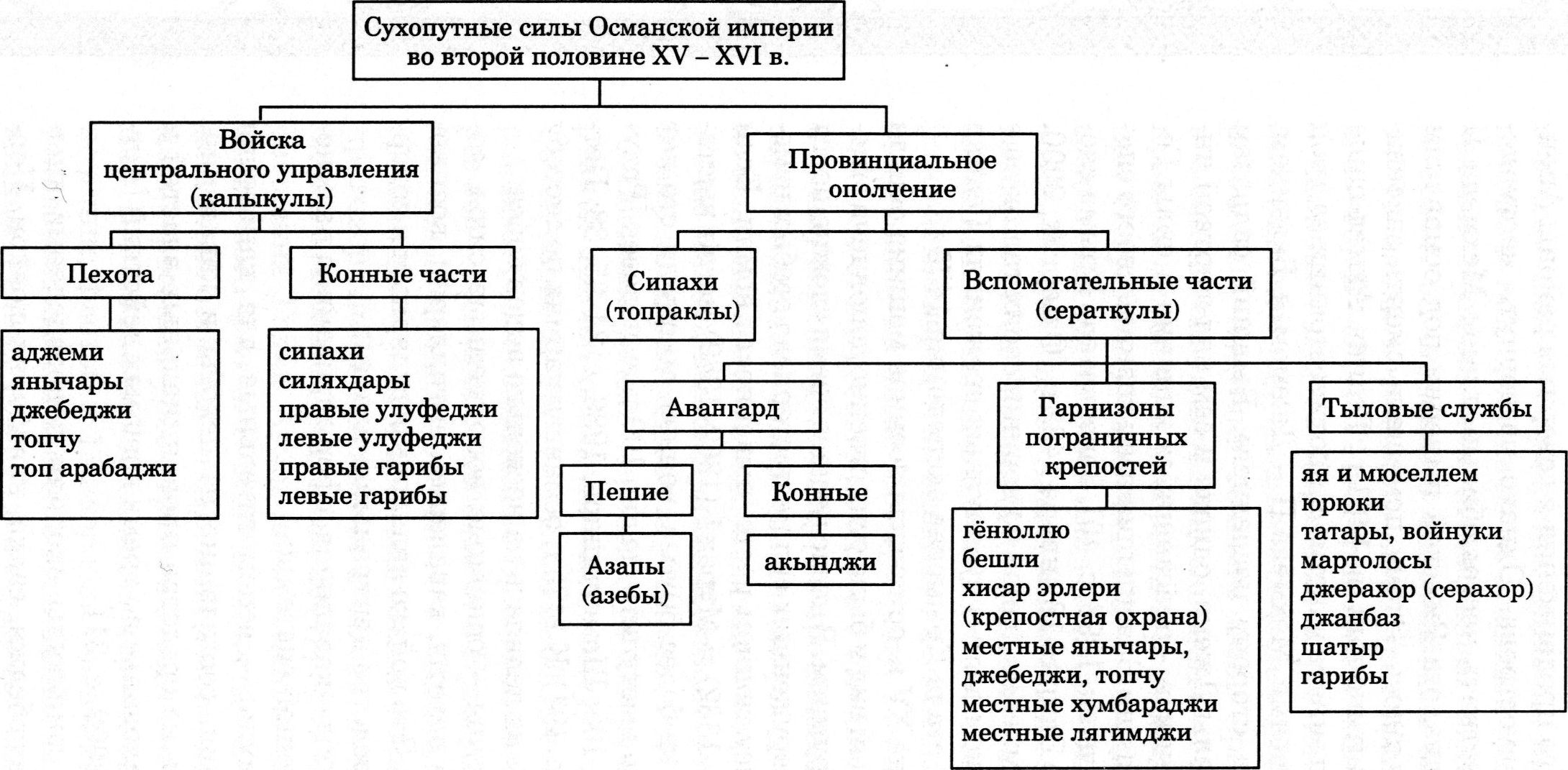 Глава V. Вооруженные силы османской империи в третьей четверти XV в. и численность крымского экспедиционного корпусаОсманская военная машина к 1475 г. представляла собой хорошо отлаженную систему. Турецкий флот после многолетнего наращивания и опыта ведения боевых действий мог противостоять сильнейшим в Европе военно-морским силам Венецианской республики. Сухопутная армия Мехмеда II фактически ежегодно участвовала в походах и сражениях. Практически ни одна из армий Старого Света не могла на тот момент по уровню организации, численности и опыту сравниться с османами. В структуре управления вооруженными силами Османской империи ключевое место занимал институт садразамов (великих везиров). Они назначались султанскими грамотами или указами. По данным «Фатих канун-наме», садразам являлся «главой всех везиров и военачальников» [Керим-заде, 1990, с. 82]. Фактически речь идет о втором человеке в государстве. Великий везир был представителем султана с чрезвычайно широкими полномочиями и отчитывался о своей деятельности только перед правителем. В мирное время садразам выполнял целый ряд важнейших в государстве функций. К ним в первую очередь относилось осуществление руководства центральным органом власти Османской империи — Диван-и Хумаюн и связанные с его деятельностью должностные назначения. По представлению великого везира на должности назначались все высшие светские чиновники. Также садразам регулярно инспектировал торговые ряды и рынки в Стамбуле, работу на судоверфях. Значительное количество времени уходило на прием посетителей, участие во всевозможных государственных церемониях и торжествах [История Османского государства..., 2006, с. 127]. Во время военных походов полномочия садразама расширялись, но с ними вырастал уровень ответственности. В это время он имел право принимать окончательные решения по любым вопросам, выпускать ферманы и грамоты с султанской печатью, поощрять и наназывать по своему усмотрению. Однако по возвращении из похода великий везир нес всю ответственность за совершенные им действия лично перед султаном [История Османского государства..., 2006, с. 128]. Во время второго правления Мехмеда II (г. п. 1451—1481) пост садразама занимали семь человек: Чандарлы Халил-паша (1439—1453), Заганос Мехмед-паша (1453—1456), Махмуд-паша Ангелович (1456—1468), Рум Мехмед-паша (1468—1469), Исхак-паша (1469—1472), Махмуд-паша Ангелович (2-й срок)(1472—1474), Гедик Ахмед-паша (1474—1477), Караманлы Мехмед-паша (1477—1481). Из этой плеяды в русле изучаемых событий основной интерес представляет личность Гедика Ахмед-паши. Гедик Ахмед-паша (?—1482), великий везир К сожалению, сведения об этом человеке крайне ограниченны. По своему происхождению он определяется исследователями как серб, албанец [Stavrides, 2001, с. 65], хорват, грек [Öztoprak, 2000, s. 42], хотя, по мнению Ф. Озтопрака, он мог быть выходцем из знатной османской семьи [Öztoprak, 2000, s. 42]. В ряде зарубежных работ Гедик Ахмед-паша называется капуданом или адмиралом османского флота [The encyclopedia of Islam, 1983, p. 764; Babinger, 1992, p. 390]. С учетом прагматичности в чиновничьих назначениях во время правления Мехмеда II (особенно это касалось воинских должностей) можно сделать вывод о службе Гедика Ахмед-паши в военно-морских силах Османской империи до выдвижения на высшие военные посты в государстве. Однако и при осаде крепостей, и при сражениях на открыт